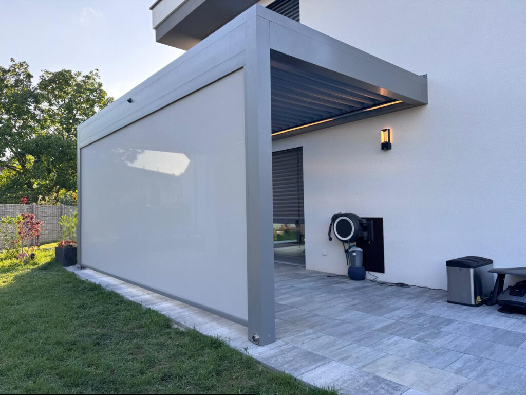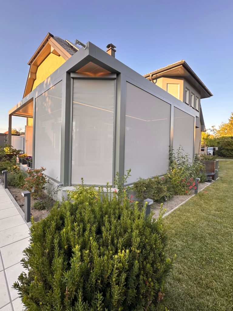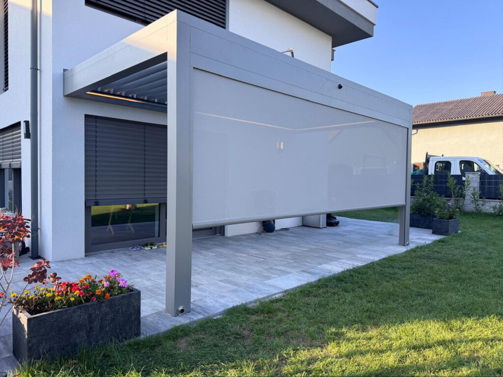 Modulare Erweiterungen: Dank der modularen Bauweise lässt sich Ihr Lamellendach ideal mit Verglasungen, Vertikalmarkisen oder anderen Extras kombinieren, um Ihre persönliche Outdoor-Oase zu schaffen.